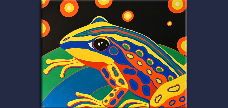 Painted after I found a very cute little Rocket Frog in our bathroom after rain. And no, he was not quite as colourful as this one. But when do I ever let colour stand in my way?