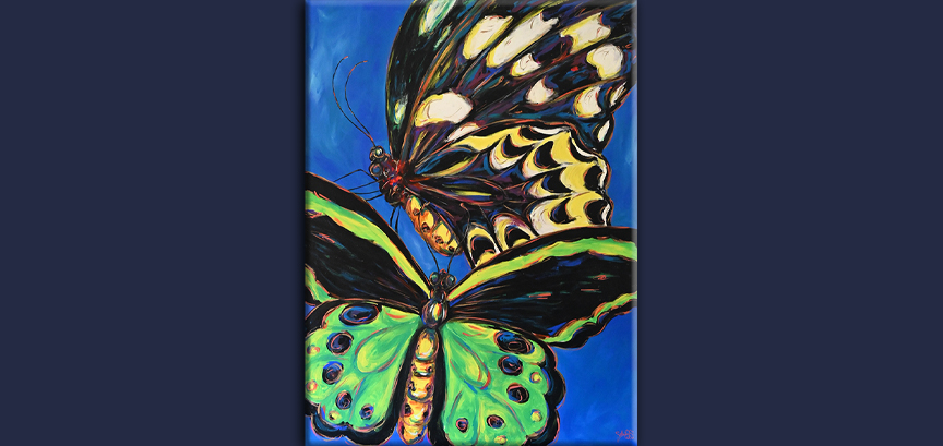 The sun is out, our largest butterflies flutter majestically, romantically, strictly ballroom; a dance of life. We were lucky enough to have these beautiful butterflies breeding and fluttering around in out garden in Mission Beach.